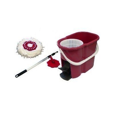 Hurricane 360° Spin Mop rotates 360° and locks in moisture! The ultimate in hard-floor clean-up has arrived with this simple two-part unit: a rotating mop featuring the absorbing power of 8000 strands, and a wring-out bucket that does the work for you, spinning over 1000 RPM to extract the mop's liquid. No disposable pads and no hand wringing required! The mess never drips or leaks, while the bucket spinner operates with a foot pedal - just pour out the dirty water. Machine washable, so mop stays fresh and clean. Polypropylene, 17 1/2 x 11 1/4 x 10 3/4".